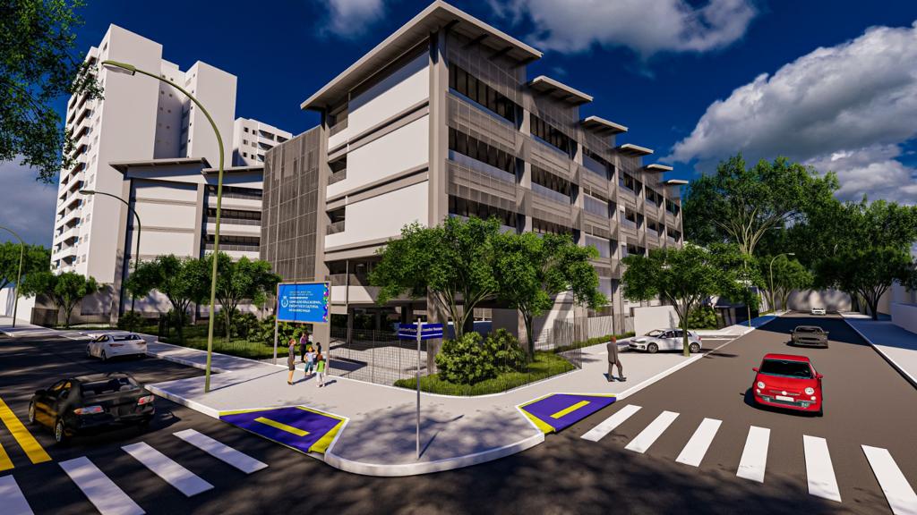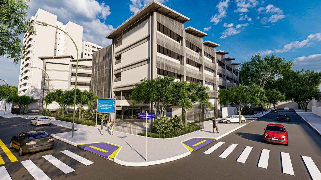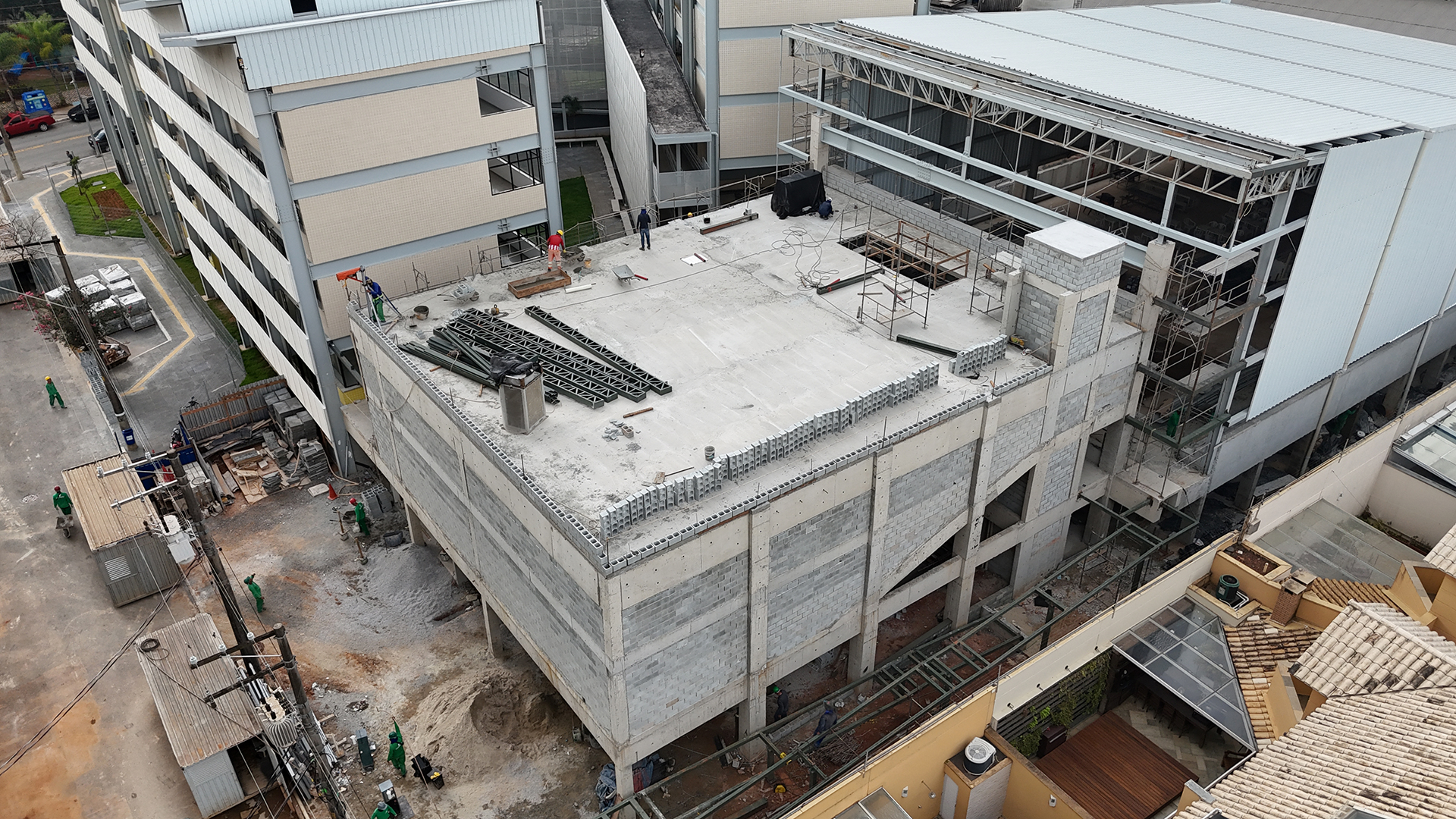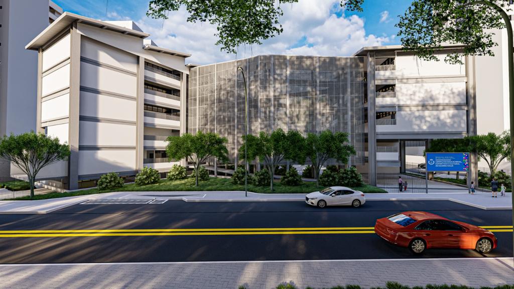 Com um terreno de 4.671,20 m², o projeto foi dividido em três edificações. Os blocos A e B abrigaram a Educação Infantil nos três primeiros andares e o Ensino Fundamental nos demais andares.